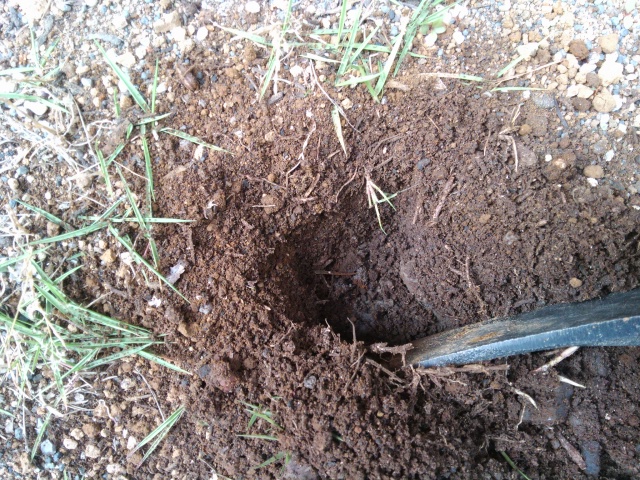 この芝生の地面は、10cmも掘ると硬い砂利の層にあたります。