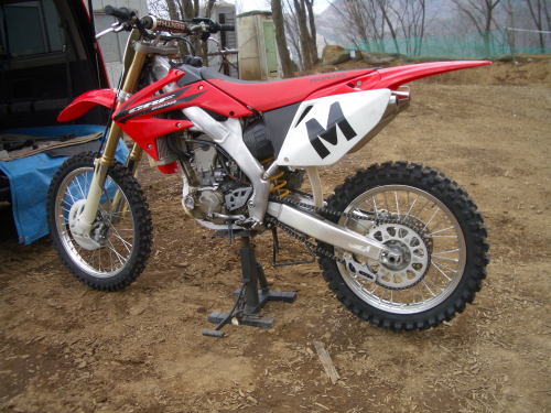 土曜が初乗りのCRF250R。ハンドルとレバーを(自分に)合わせただけで、サスペンションは合わせてないんですが、さすが良く走りますね。でも車体とかの感覚がKXと違いますので大きいジャンプはまだ飛びません。もうちょっと慣れてからね。詳しくはまだ今度。
