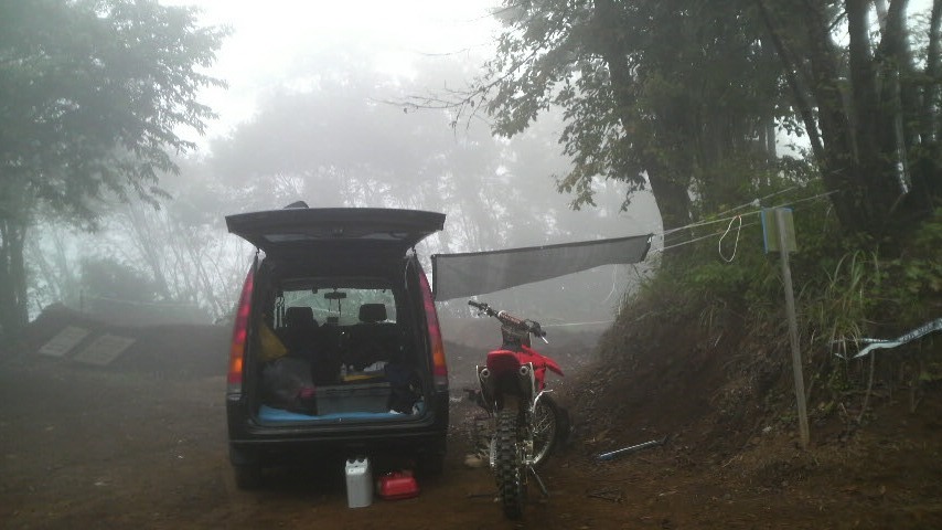 時折真っ白にガスるコースはたっぷりと水分を含んでいるけれど、走ってみなけりゃ始まらないので走行準備を。