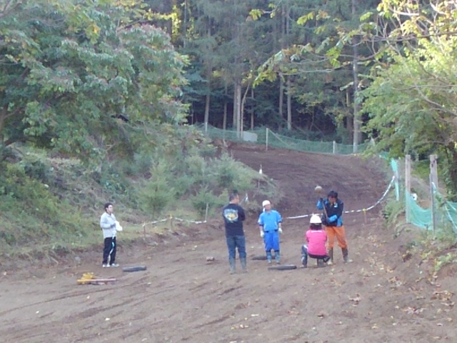 コース内のテープは方向指示などはマーシャル軍団が担当します。私も準備してコースに入るのですが、なんか途中でみんな止まってる・・・。図だけではわかんないって。