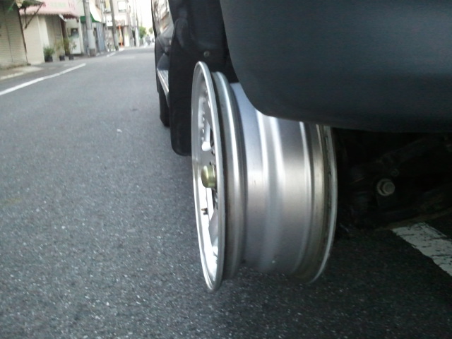 さて、すでにアルミホイール(JWL-Tマーク付)を調達しておりますので、日曜日の本日(もう昨日ですが)はその装着テストをしました。