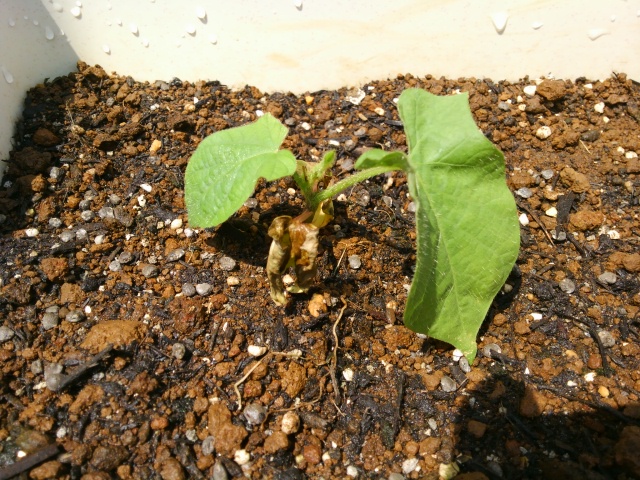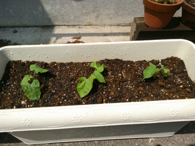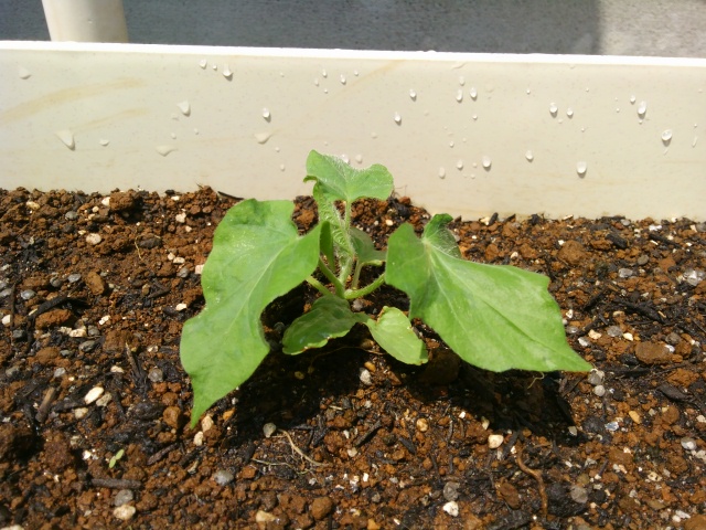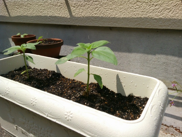 間引いた後にプランターへ植えていた方(本来なら弱い方)がグイグイ成長しています。