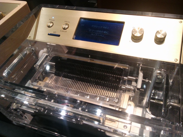 このオルゴールは曲データに合わせて突起を動かすことで複数の曲を実演する訳です。(ちなみに、よく売られているオルゴール・アレンジのCDなどは、オルゴール音をキーボードで演奏していますので、ある意味実演では無いんだそうで。