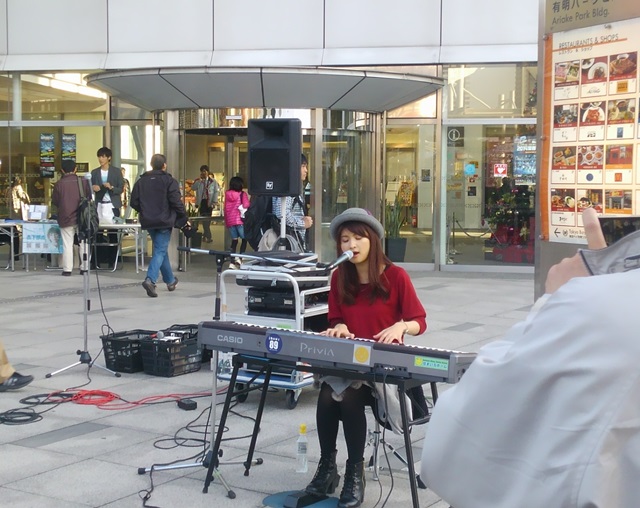 11月のよく晴れた秋空に溶け込むような澄んだ歌声の女性が歌っていました。