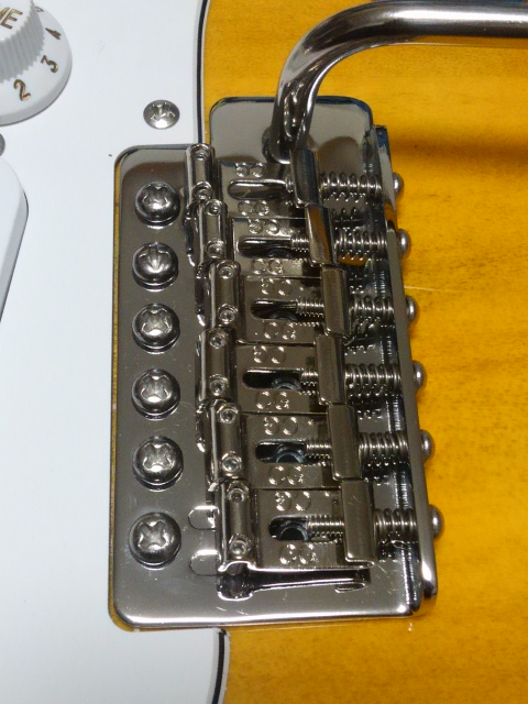 よく見たら、ブリッジ(シンクロ・トレモロ)の取り付けネジ6本が若干波打っているので、ここも手を・・・
