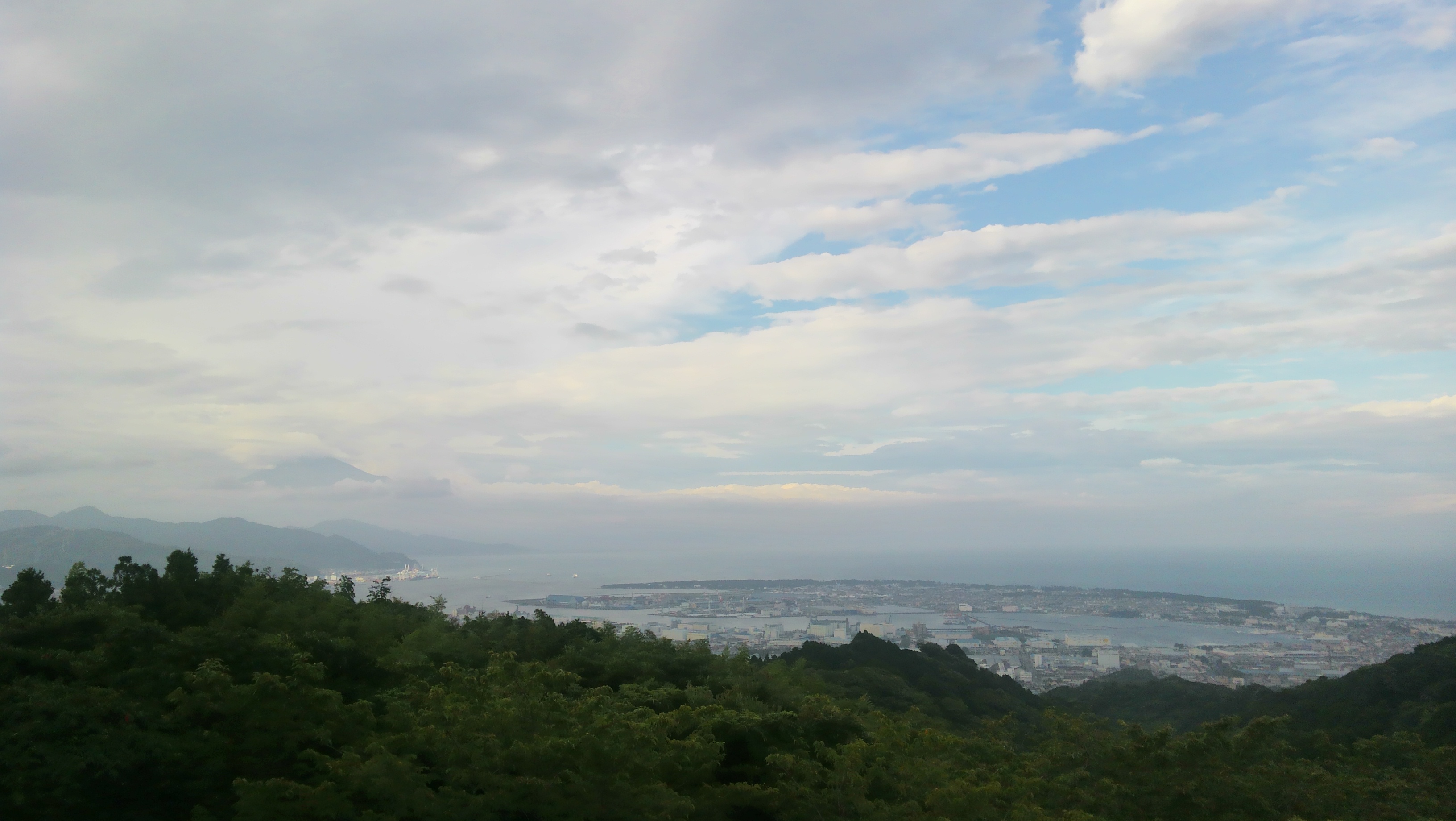 トタトタタ・・・っと日本平の旧道を登り、頂上から清水港、三保海岸、沼津、富士を望む。