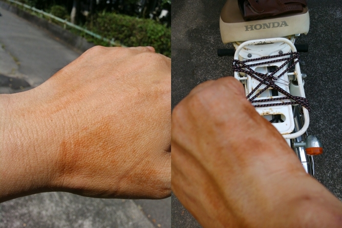 が、汗をかいたのと、その水分で結構な色落ちがありました。