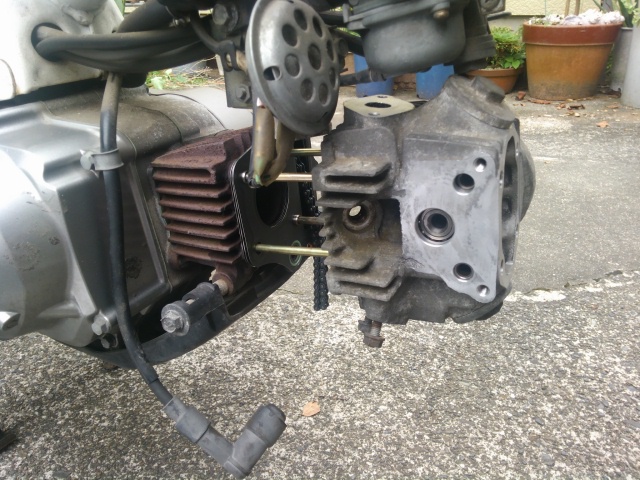 6角支柱でボディから距離をとったのは、カバーの膨らみ部分を避けるため。ここに振動が加わると、その先に500g程度の重さが載るので少々心配ではありますが、「喉の渇きが潤うかどうかなんだ、やってみる価値はありますぜ!」という気持ちで、今後も取り付け位置などを試してみます。