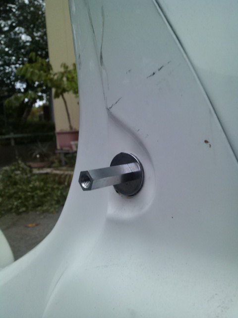 通常はミラー取り付け部にステーをかませて取り付けるモノのようですが、ハンドリングの影響を考えて本体側にしました。
