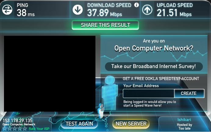 入手できる中で最速な物(最大240Mbps)なのですが、まぁそこはね、自宅の光回線は1Gbpsで契約してもPING70ms程度、3~50Mbps程度の速度なので、そこはまぁいいだろう。