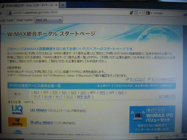 8・配線後WiMAXはきちんと認識し、ポータルサイトも見れました