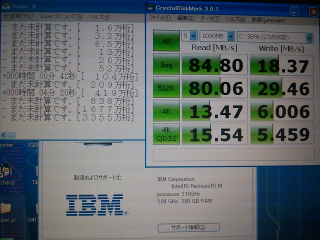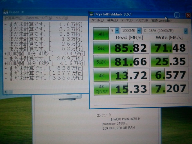 ↓調子に乗って、WindowsXPをクリーンインストールしてみました。スーパーπは41秒と4分2秒。