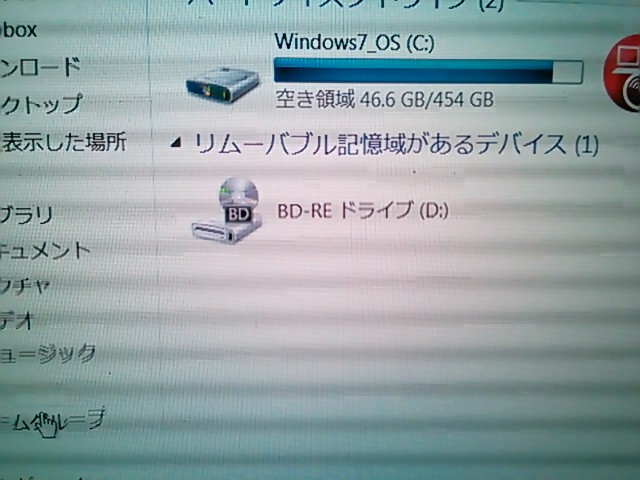 スイッチオンで、自動認識され BD-REドライブ(D;)と表示されました。