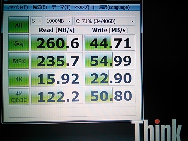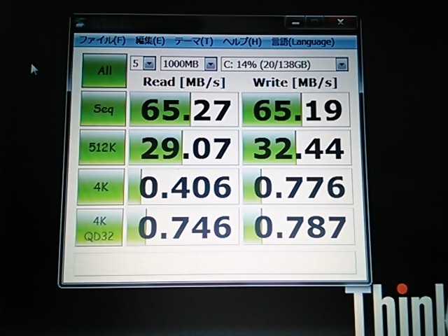 リカバリーディスクからのインストールを経て、下の写真のように数値は速くなった訳です。