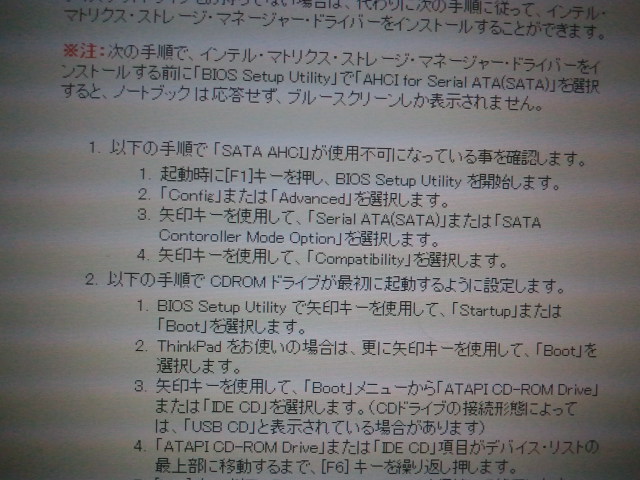 最初は、OSを入れたら別途ネットワークドライバを入れて後はwebから落とせばいいじゃんと思ってたけど、AHCIとか全然わからなかったし、SATAドライバは後から入れたら不具合出たかもしれん。