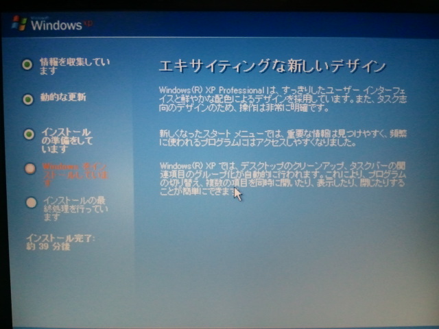 VISTA起動状態で、外付けDriveをつけてXPディスクを読み込ませても進めることは出来ません。