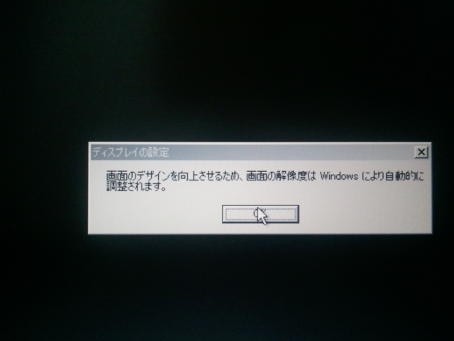 ちなみに、自動にして進めていたディスプレイの設定が800×600になっている!!ので1024×768に変更しましょう。