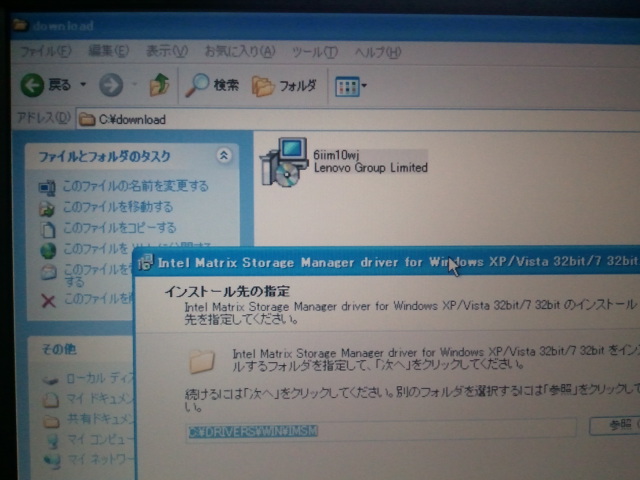 SATA用ドライバーexeファイルはSDカードにD/Lしておく。