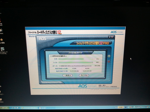 写真はソフトを使ってデータ移行中の様子。