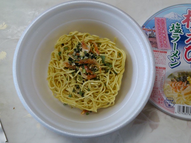 で、そこで目についたのが「桜えびの塩ラーメン」というこの商品。400円くらいするという、カップ麺にしては高額な商品です。