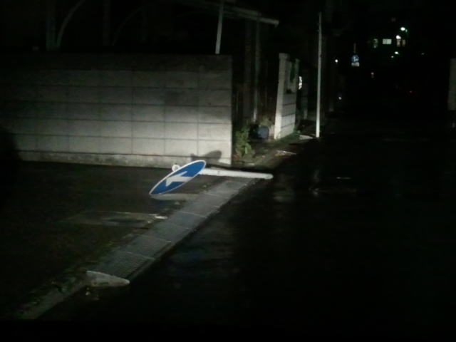 本日帰宅すると、駐車場の前のポールが倒れていました。