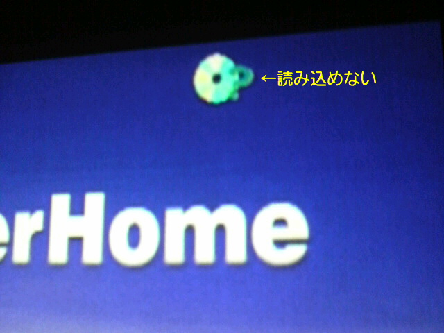 ↓の写真は DVDプレーヤー → EPSONプロジェクター → 部屋の壁 という、わが家のなんちゃってシアターから。(メディアに?マークが出て認識してくれません)