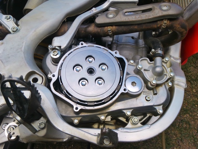 車検長のお店に部品を頼んで車両持込み。クラッチセンターのロックナットを緩めたり締めたりするには専用工具のあるお近くのウィング店でどうぞ。