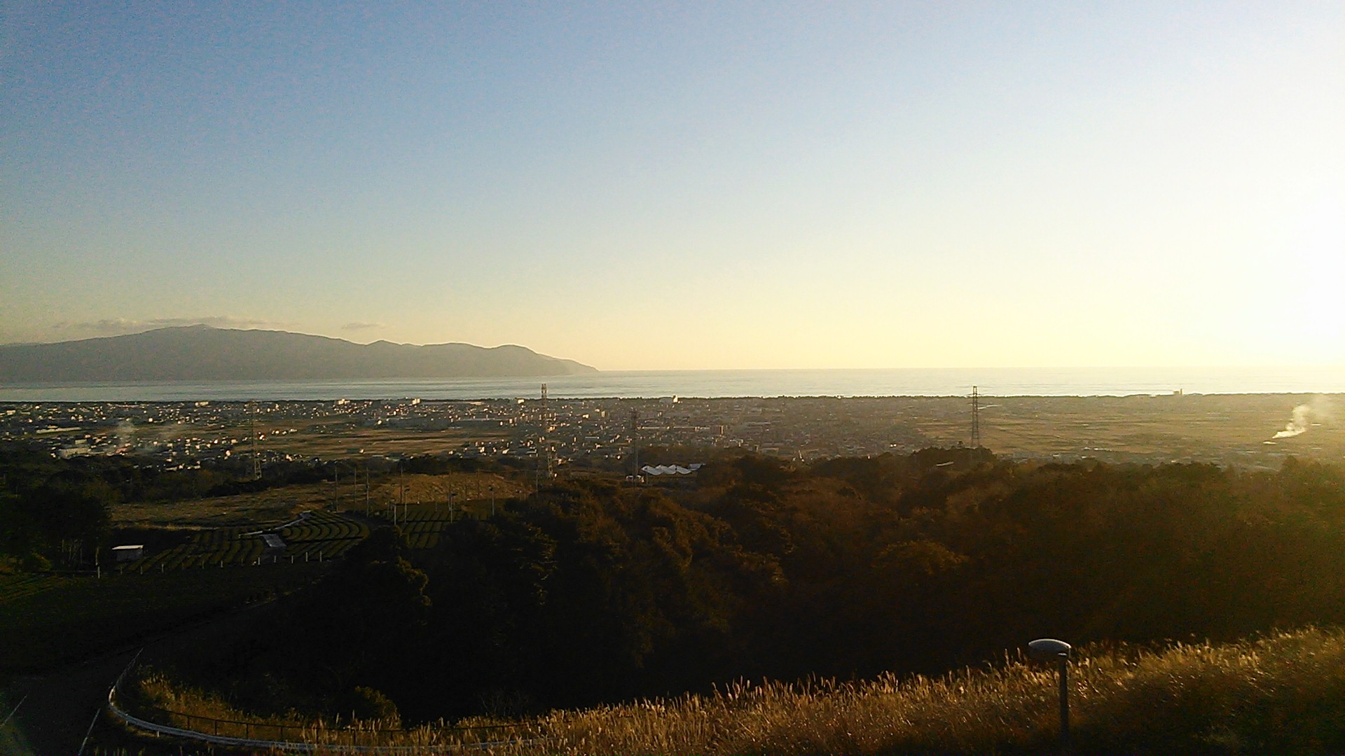 夕日を映す駿河湾が綺麗だったので、駿河湾沼津SA(下り)に立ち寄ってパチリ。