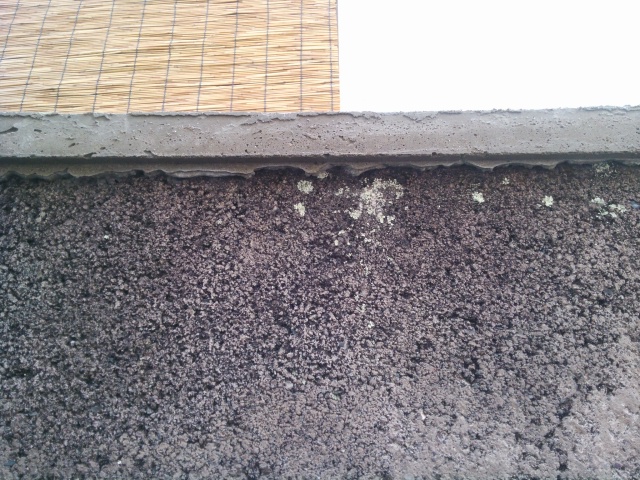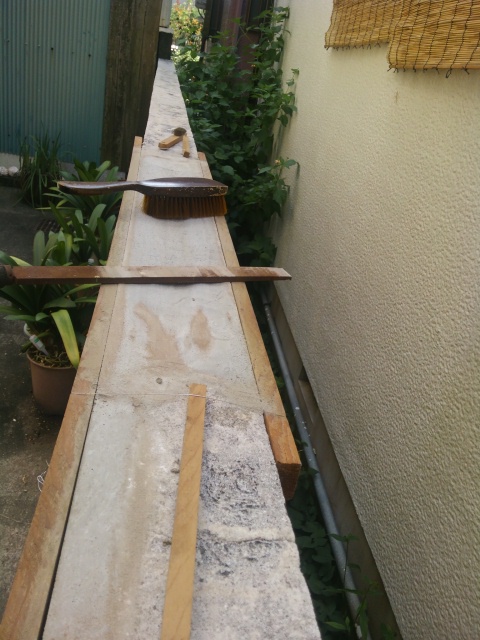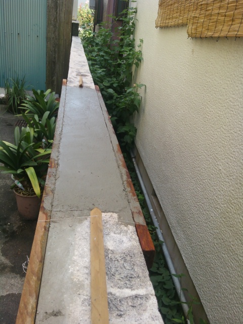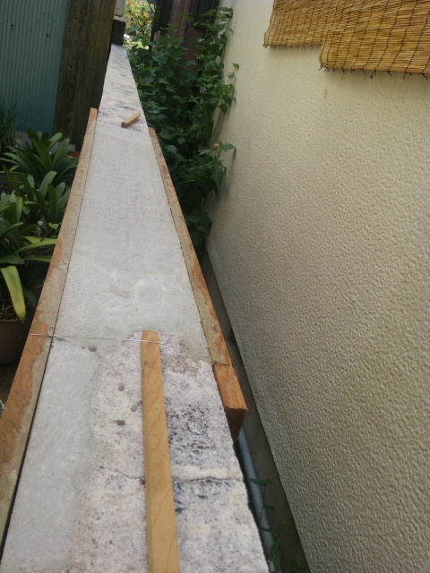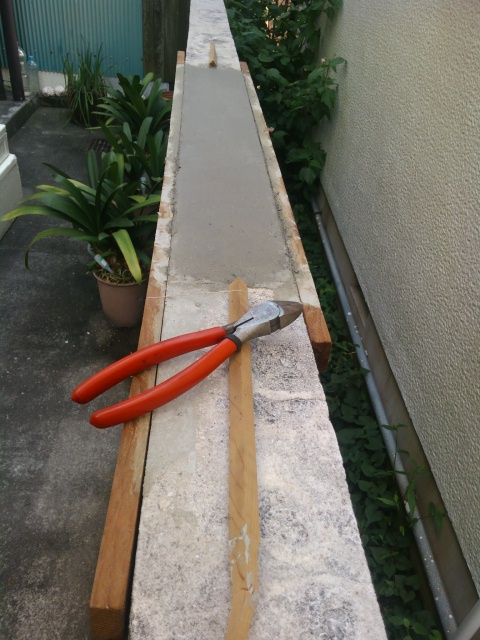 やわらかめに作って、さくさく塗りました。前回、コンコンたたいて剥離させていた型枠との隙間にまたセメントが入ってしまうのが難点。やはり、こういうモノは中断などせずに一気に仕上げたいものですね。