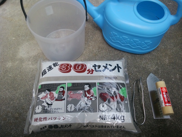 色々と種類があるみたいなんですが、以前に試し塗りしたときに開封済みのやつが2種類あったんですね。んで、両方使ってみた結果、表面が滑らかだったのがこの30分セメントだったのです。今後、一家に1つ常備しておくとしたらこの商品が色々な意味で便利かなということでこれをチョイス。(特に速乾性は重視していませぬ)