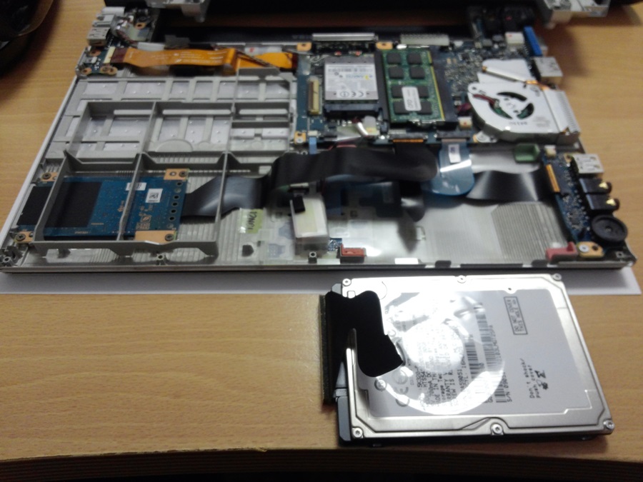 TOSHIBA dynabook SS RX2 (中古)をメンテ中、ファンのゴミを発見した俺はそのゴミを取ろうと筐体を傾けたんだが、あぁなんてこったい、あろうことかHDDがポロリと落ちてきてフレキが切れちまったんだぜ!