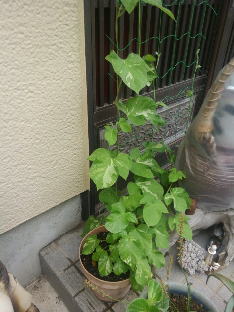 葉っぱが他とちょっと違う(白が入っている)んですが、鉢を少し大きい物に変えたら急に成長し始めました。