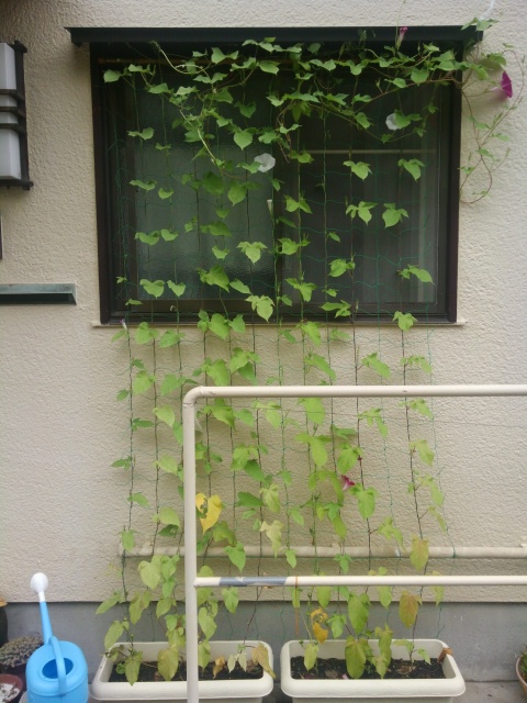やっぱり3m伸びるという朝顔を2mそこそこの高さで収めようというのが間違っていた訳で。