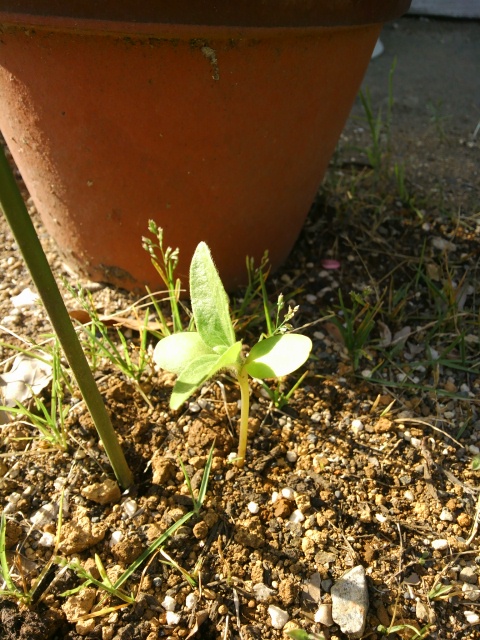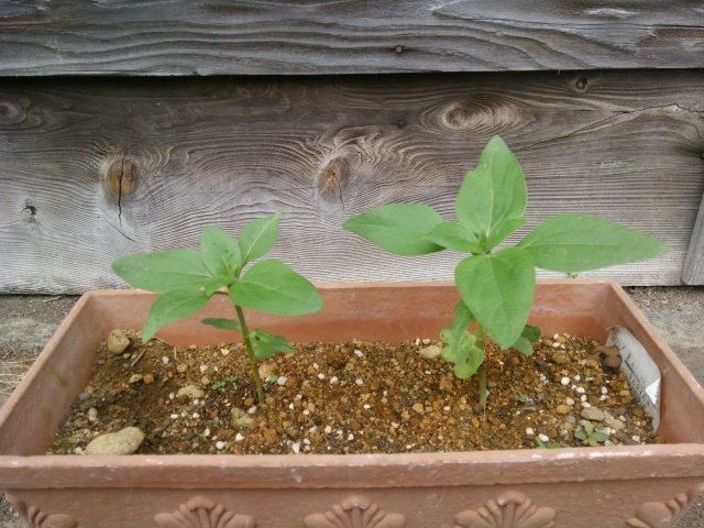 向日葵のタネの説明には、やせた土地でも比較的よく育つという話でしたが、間引いた方(成長の良くない方)の成長を見れば、これはもう地面の差というのは明らかなので・・・