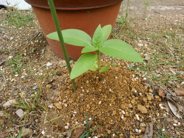 正確に言うと、地面に植えた向日葵の成長がここにきて止まった感じです。