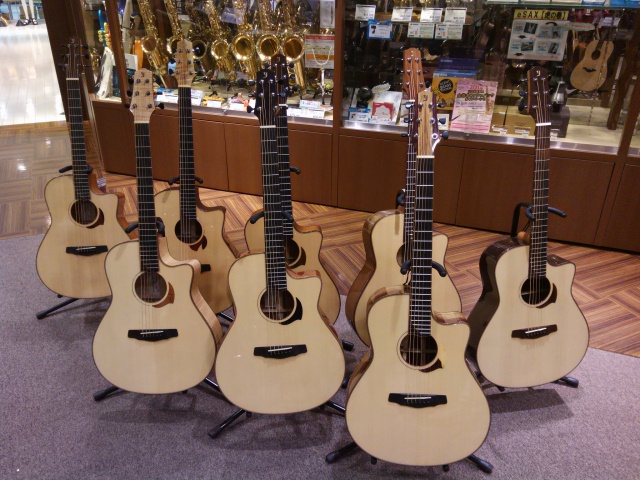 代理店の方がいらしてまして、ギターがいっぱい並んでおりました。