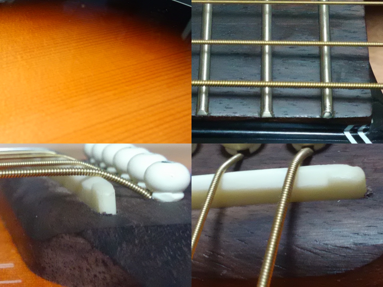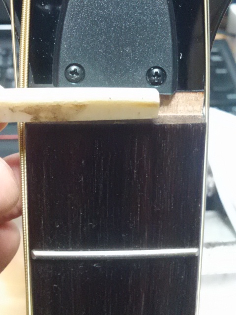 ということで、ネックやブリッジ周りを点検し、異常な無いことを確かめて、ブリッジを削って弦高を下げました。