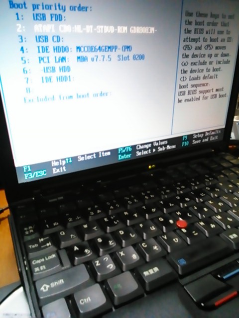 ドックにOSメディアをセット。BIOSのBoot順を確認・・・といってもデフォルトの順番でOKです。