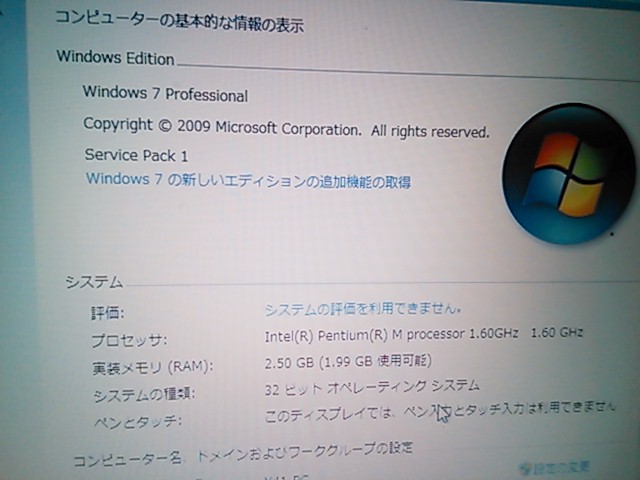PenM1.6 memory2G のマシンにWindows7 32bitが入りました。