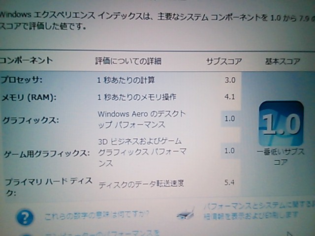 この状態でエクスペリエンスは以下。ディスク転送の評価が一番良いですな。