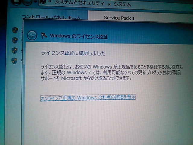 OSの導入手順は省略しますが、Xpよりも簡単であるのは言うまでもなく。認証は後回しにします。(OSメディア購入先から後にした方が良いと言われたので)