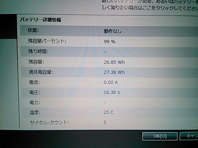 容量は写真参照。Lenovo省電力マネージャー6にて設定アリ。