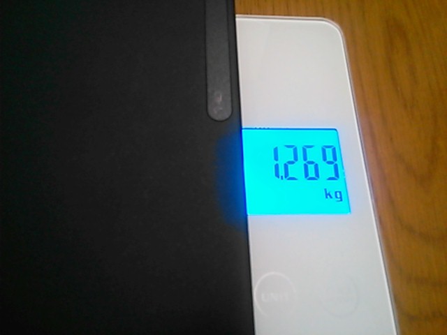 ニトリで1,490円、2.0Kgまで量れます。では、X41の重量を量ってみましょう。